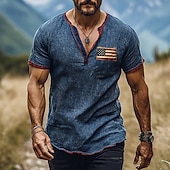 More information about Men's T Shirt Henley Shirt Tee Short Sleeve Shirt Short Sleeve Henley Summer American Flag Fashion Designer Basic Print Vacation Street Going out Blue Top Tee for Men