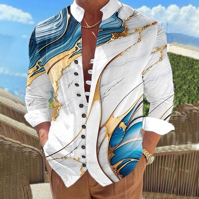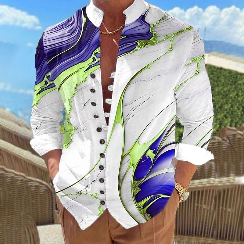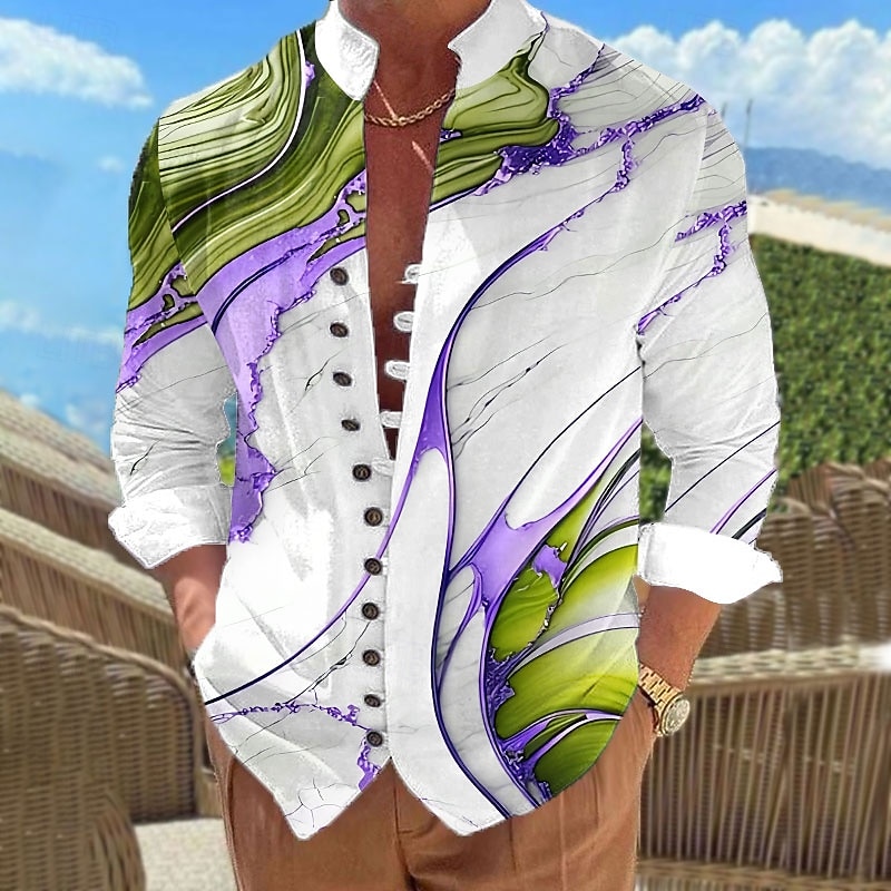 More information about Men's Marble Abstract Liquid Art Shirt Stand Collar Shirt Long Sleeve Casual Vacation Daily Wear Going out Spring Fall Mandarin Collar Band Collar Button-Down Linen Like Shirt Wine Blue Purple Green
