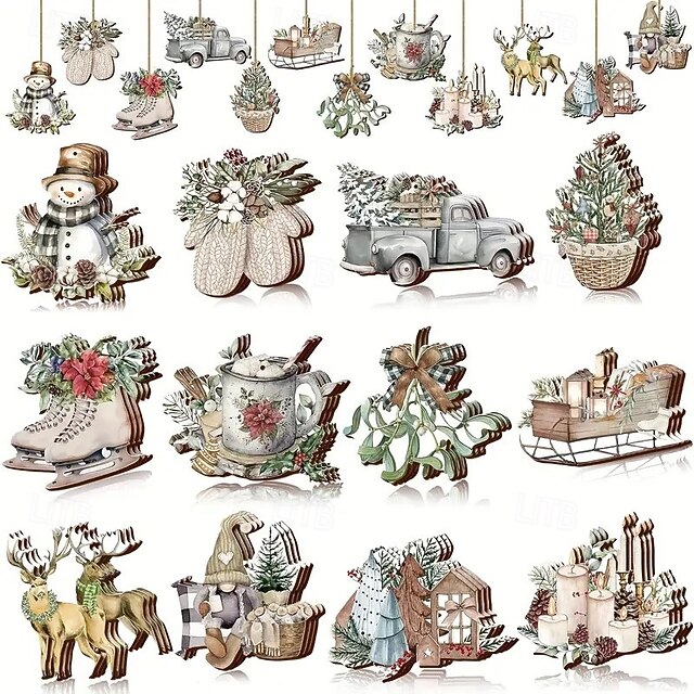 $14.49 - 24pcs Vintage Wooden Christmas Ornament Set, Featuring Santa and Snowman Tree Tags, Perfect for Holiday Decor, Thanksgiving, and Halloween Celebrations 2025. Shop for cheap Tree Accessories online? Buy at lightinthebox.com on sale today!