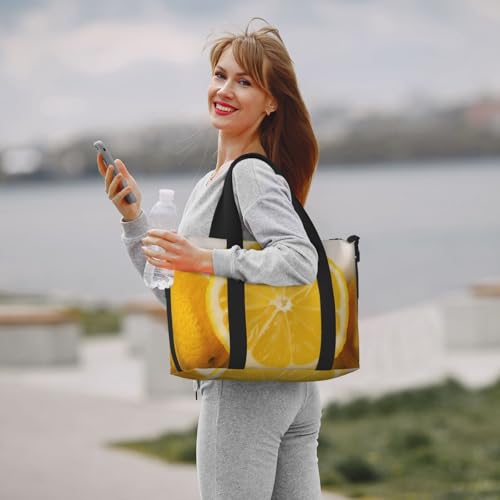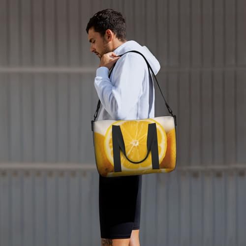 Travel Duffel Bag for Women, Large Shoulder Weekender Overnight Bag, Sport Gym Bag for Men, Carry On Tote Bags, Summer Lemon Luggage Bag for Travel Essentials 6