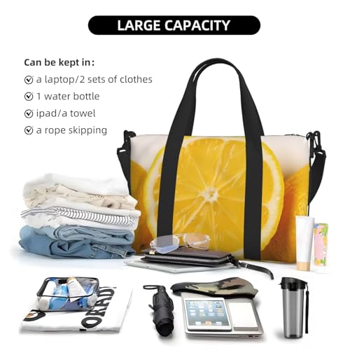 Travel Duffel Bag for Women, Large Shoulder Weekender Overnight Bag, Sport Gym Bag for Men, Carry On Tote Bags, Summer Lemon Luggage Bag for Travel Essentials 7