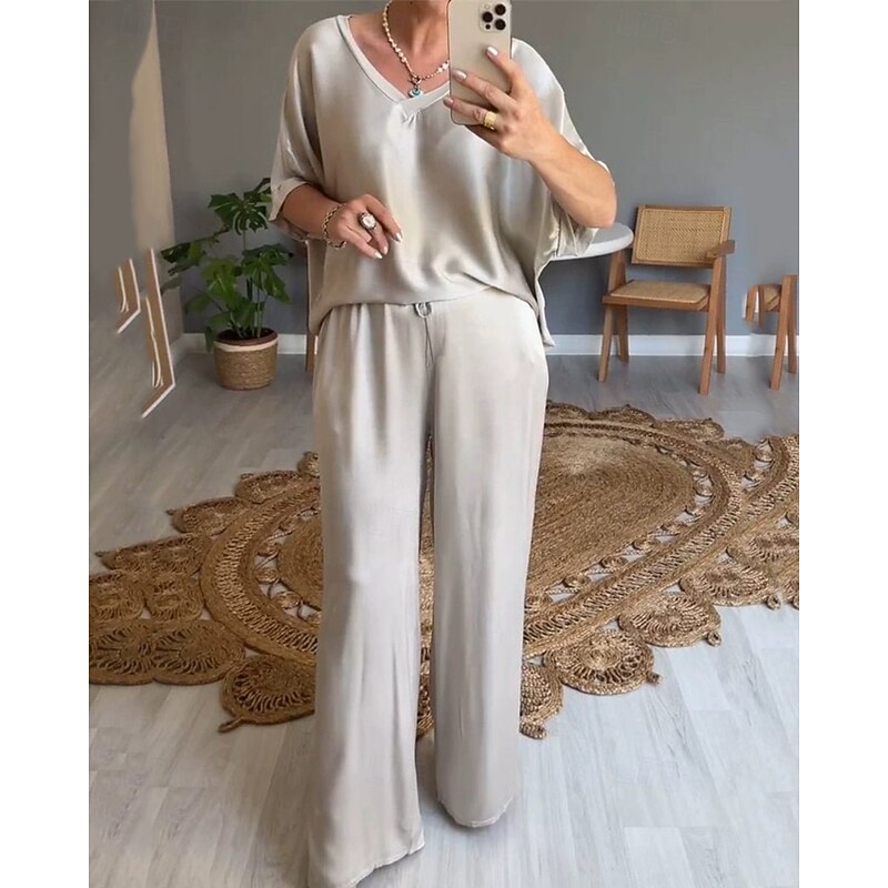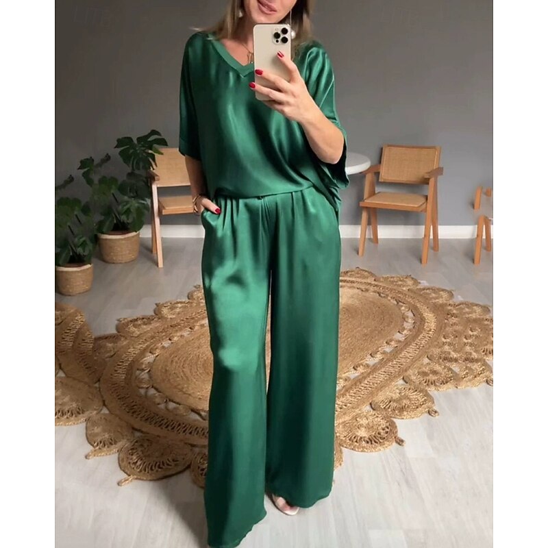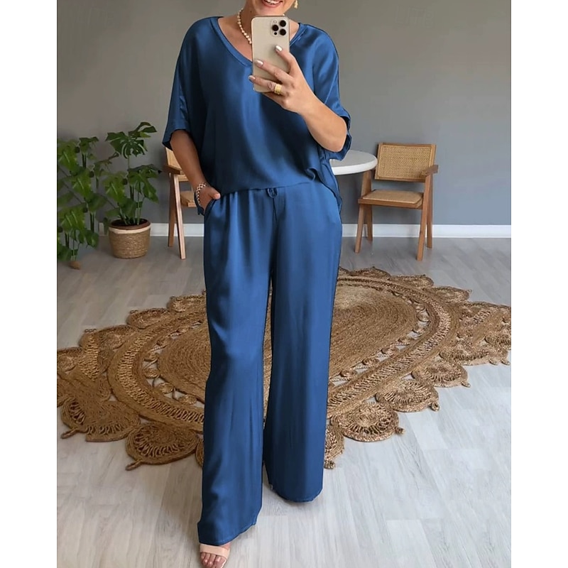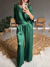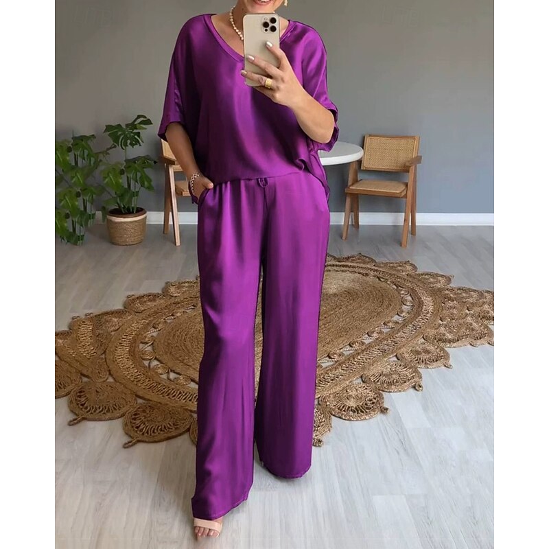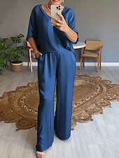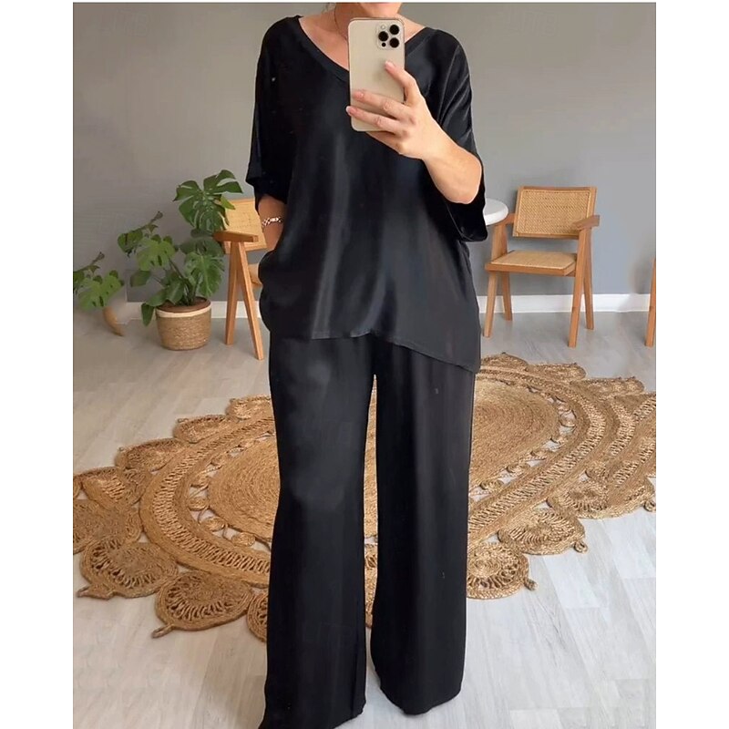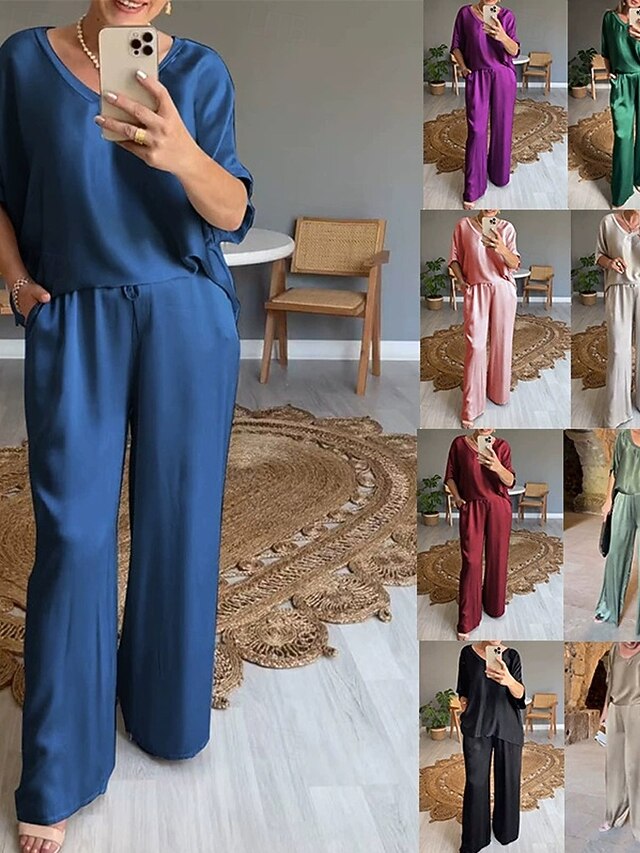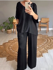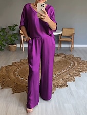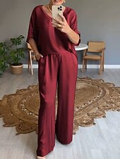 More information about Women's Normal Jumpsuit Streetwear Solid Color 3/4 Length Sleeve Wide Leg Crew Neck Pocket Street Daily Regular Fit Black Pink Wine Fall