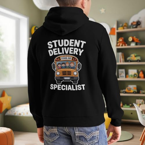 Kids Student Delivery Specialist Bus Driver School Bus Boys Girls Lightweight Kangaroo Pocket Fleece Hoodies 5