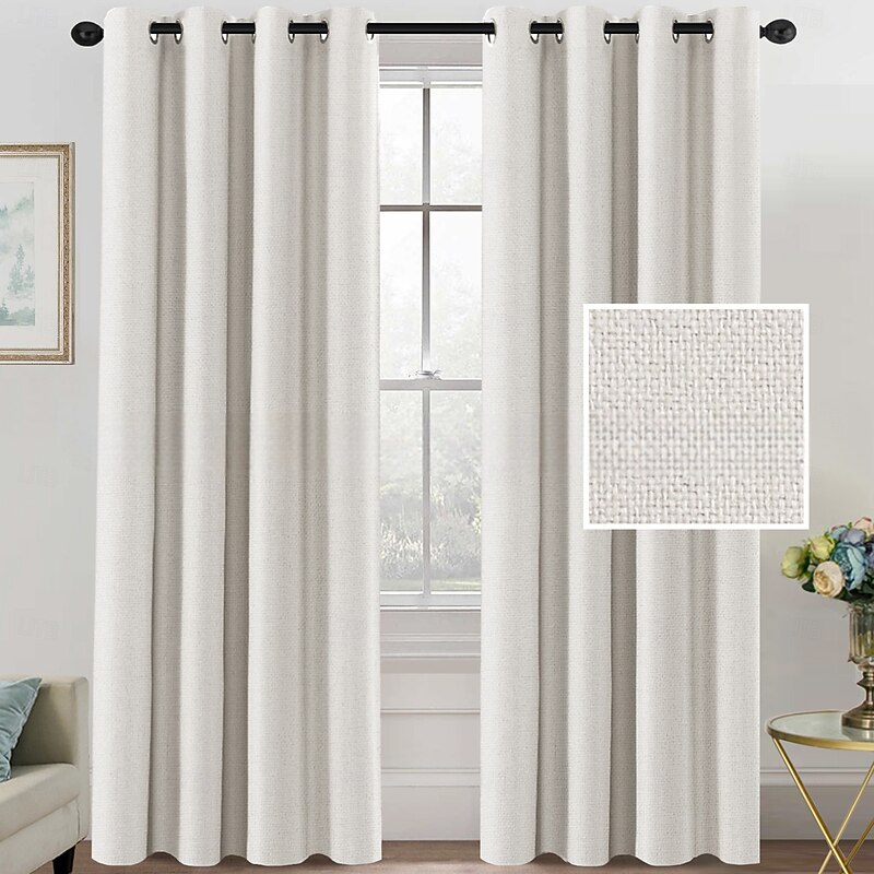 HOT ! Faux Linen Curtains Blended Curtain Panels Bundle Blackout Linen Look Curtains for Bedroom 2 Panel Sets