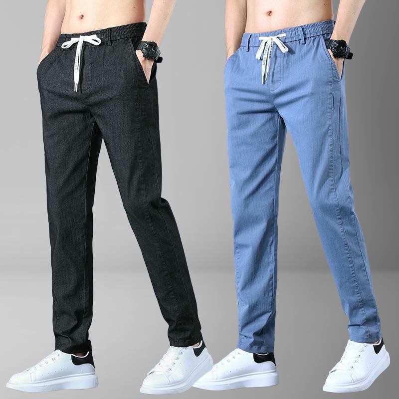 HOT ! Men's Spring Summer Thin Elastic Drawstring Waist Loose Straight Casual Pants