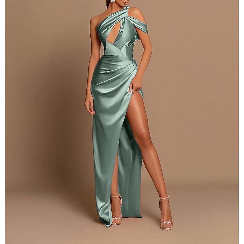 More information about Beach Wedding A-Line Evening Gown Cut Out Dress Formal Wedding Guest Floor Length Sleeveless Spaghetti Strap Satin with Slit Masquerade Dress