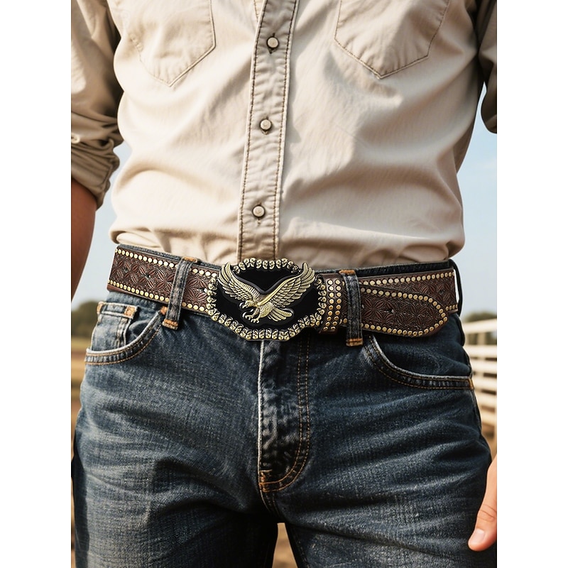 $18.99 - Men's Western Style Leather Belt with Eagle Buckle – Vintage Embossed Design with Rivets, Ideal for Casual and Country Wear 2025. Shop for cheap Men's Belts online? Buy at lightinthebox.com on sale today!