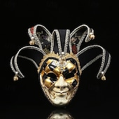 Harlequin Halloween Venetian Mask Volto Larva Carnival Mask Full Face Adults' Men's Women's Halloween Carnival Mardi Gras Party Masquerade Carnival of Venice Easy Halloween Costumes Dress Up