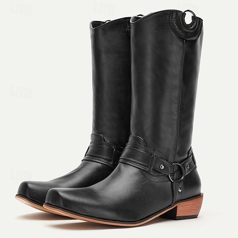 Highlights Fabric: Crafted from high-quality faux leather, these boots offer a luxurious feel and exceptional durability. The PU upper and lining materials provide a sleek, polished look suitable for various occasions, ensuring comfort and style through spring and fall seasons. Style: Featuring a classic cowboy boot design with a modern twist, these boots are designed with a round toe and a casual style, making them versatile for both equestrian and everyday wear. The boots feature booties/ankle height, making them adaptable to many outfits. Design Highlights: These boots showcase decorative splicing and round pull tabs, embracing the traditional Western aesthetic. The stacked heel adds height and comfort, while the slip-on loafer closure offers ease of use. The sturdy rubber sole ensures excellent grip and stability on various surfaces. Occasions: Perfect for daily wear and special gatherings, these boots blend effortlessly into casual outings or more rugged settings. Their solid color pattern makes them a versatile choice for those seeking a classic yet contemporary look. The retro and cowboy-inspired design ties into 2024 trends, making them a fashionable addition to any wardrobe. Size Notice: Available in a range of sizes from US6 to US12, these boots are designed in standard sizing for a perfect fit. Select your usual size for an optimal wear experience, as they are crafted to accommodate a variety of foot shapes while maintaining comfort and style.
