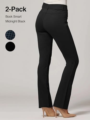 HOT ! Conceited 2-Pack Stretch Slacks for Women - Wear to Work - Bootcut Dress Pants with Pockets - Book Smart, Black - (X-Large)
