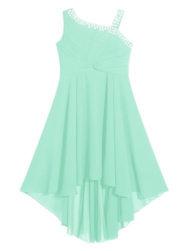 Hularka Kids Girls Sparkly Sequins Birthday Party Dress Sleeveless Ruched Flower Girl High-Low Dresses for Wedding 6