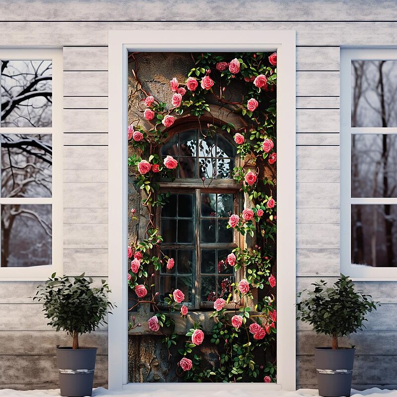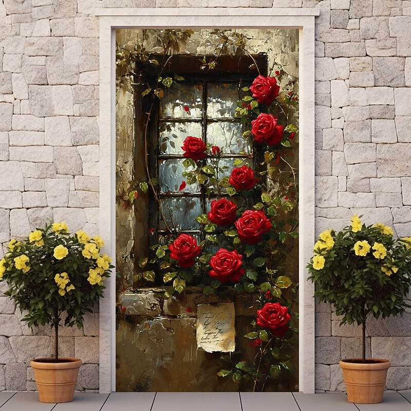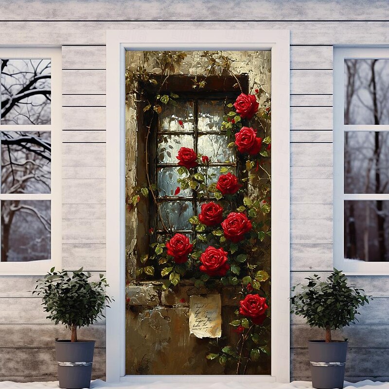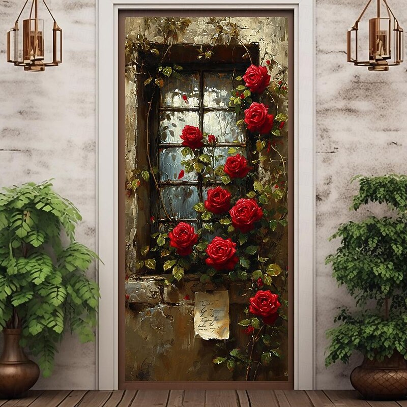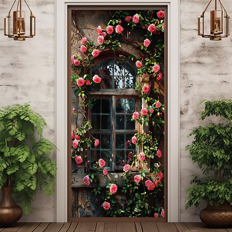 HOT ! Wedding Outdoor Decorations Door Covers Door Tapestry Door Curtain Decoration Backdrop Indoor/Outdoor Door Banner for Front Door Farmhouse Roses