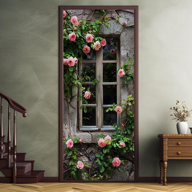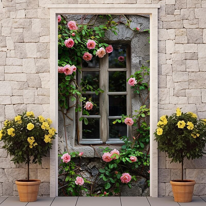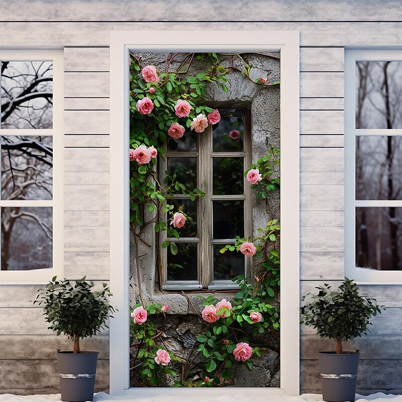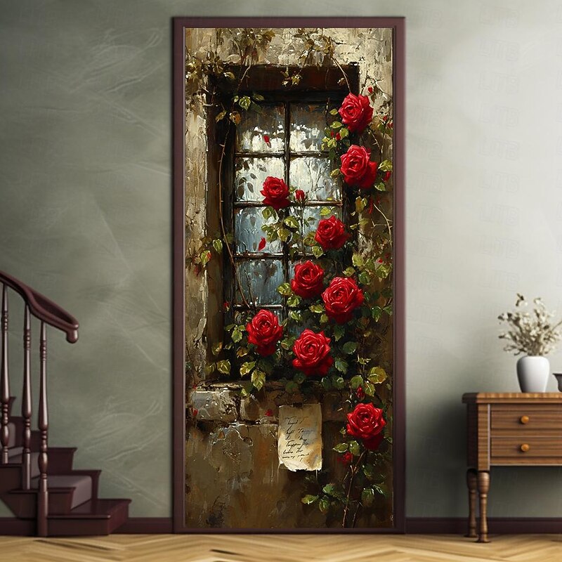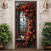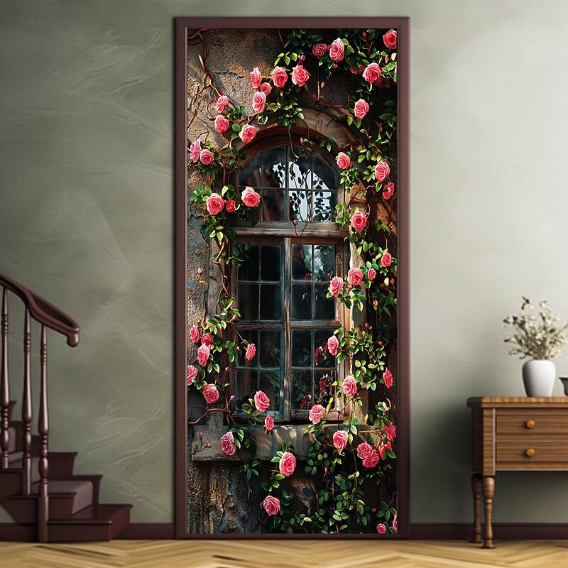 HOT ! Wedding Outdoor Decorations Door Covers Door Tapestry Door Curtain Decoration Backdrop Indoor/Outdoor Door Banner for Front Door Farmhouse Roses