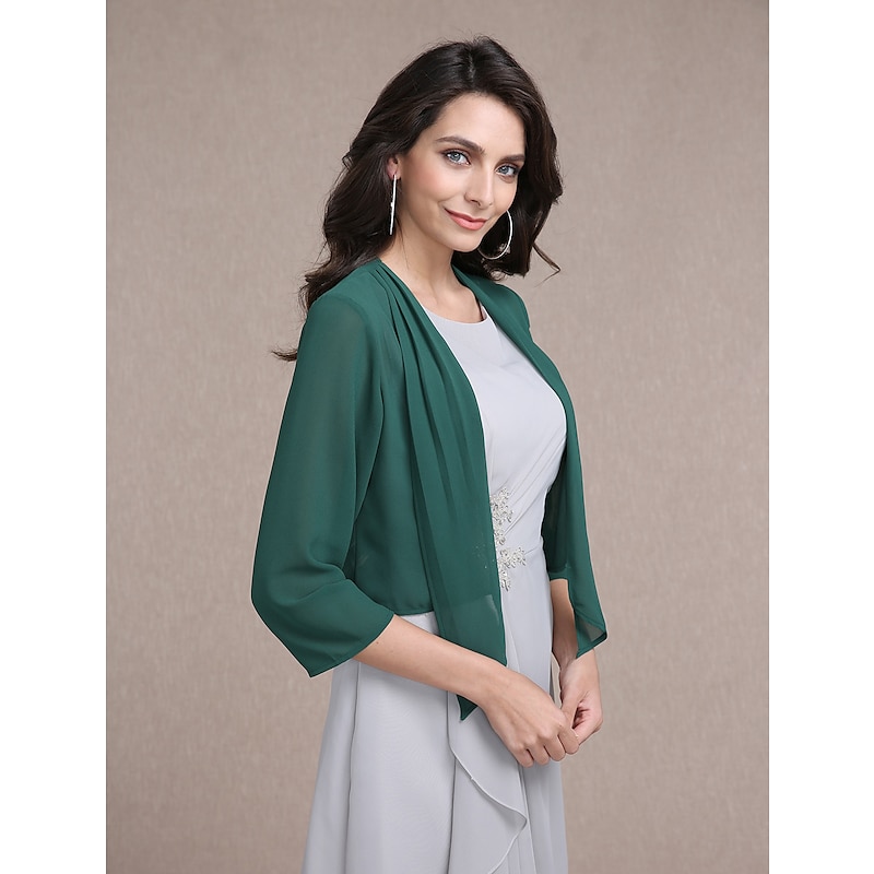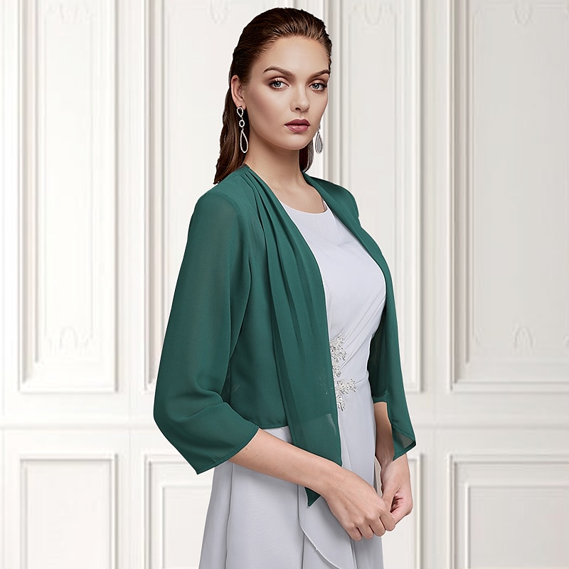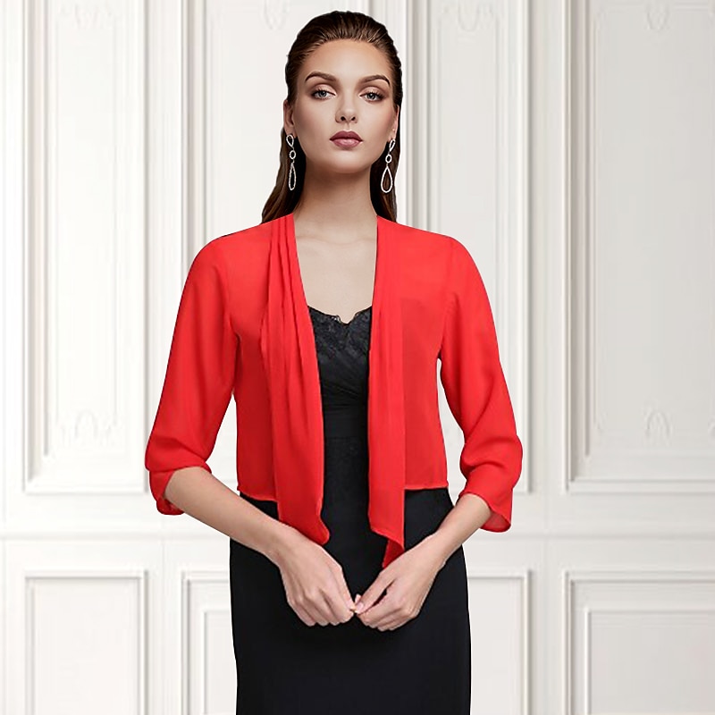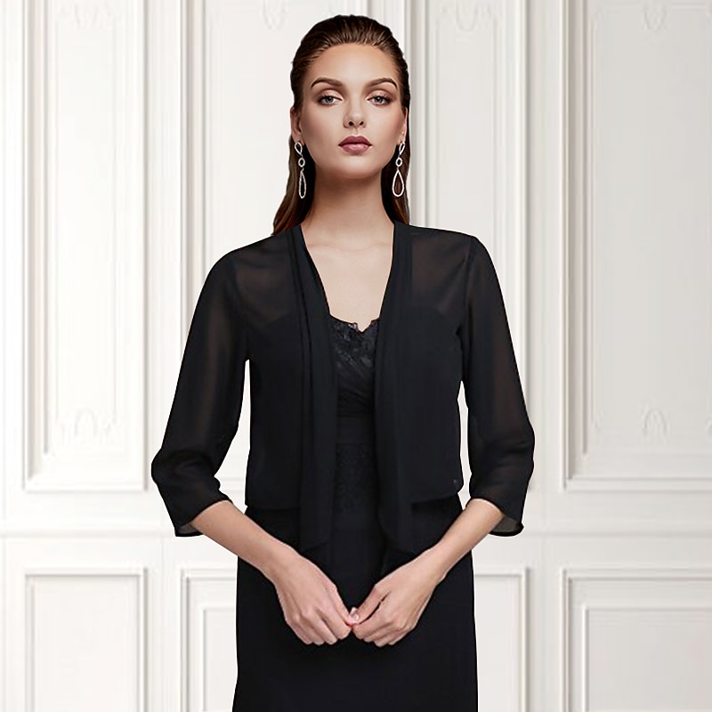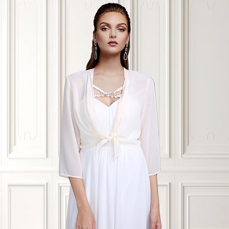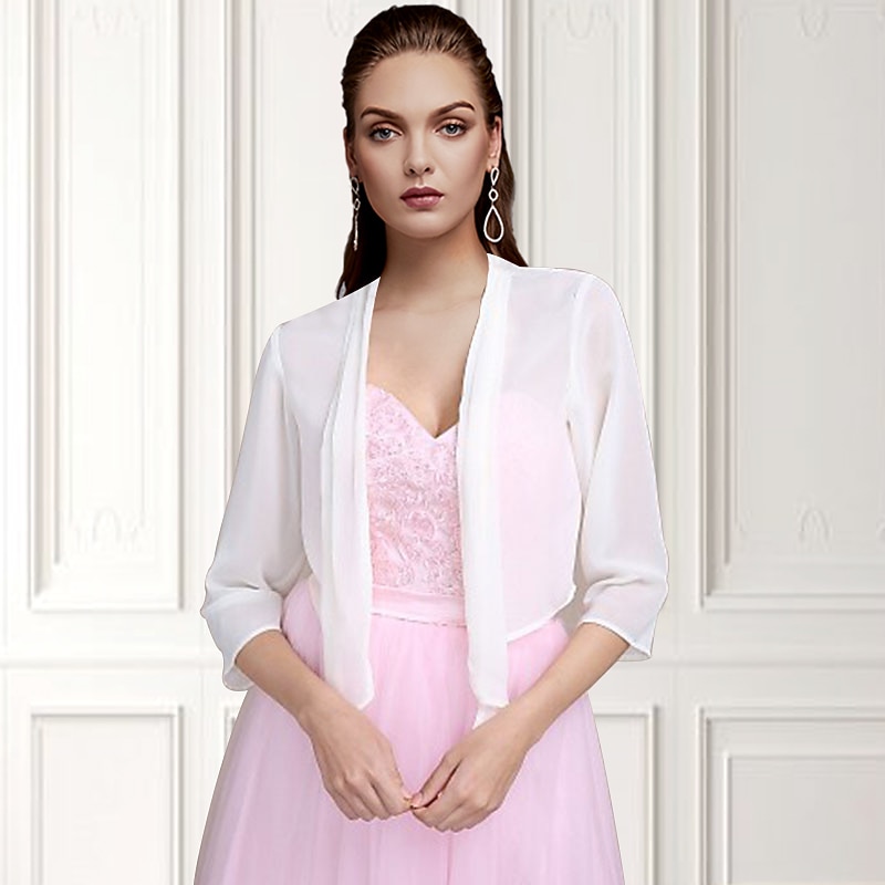More information about Shawls Bolero Ladies Elegant Casual Daily 3/4 Length Sleeve Chiffon Wedding Guest Wraps With Pure Color For Wedding Spring & Summer dress to impress