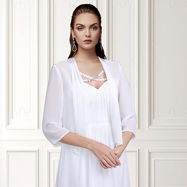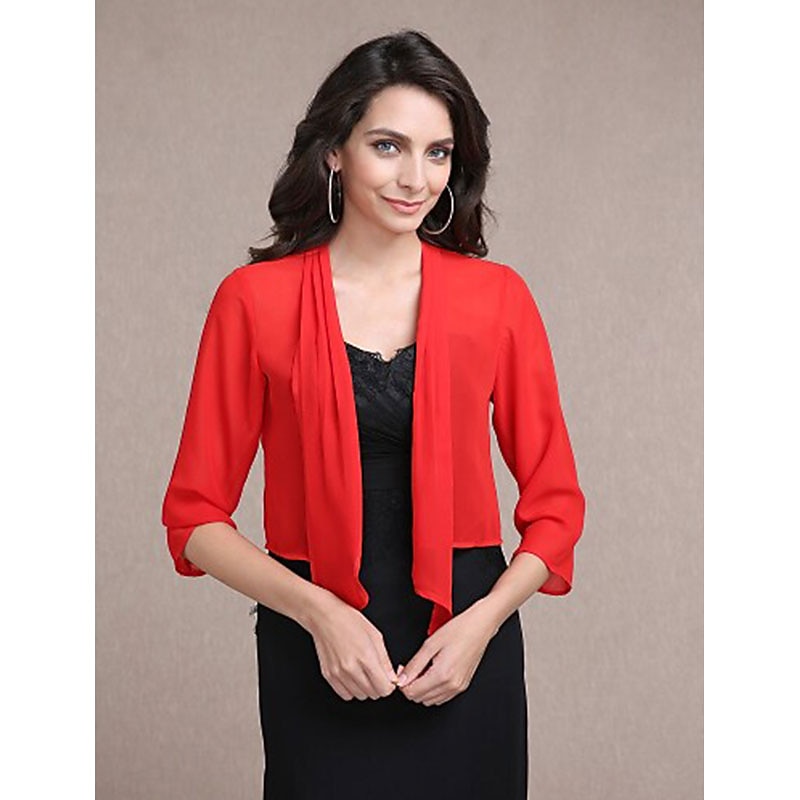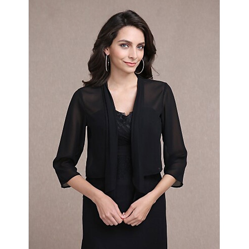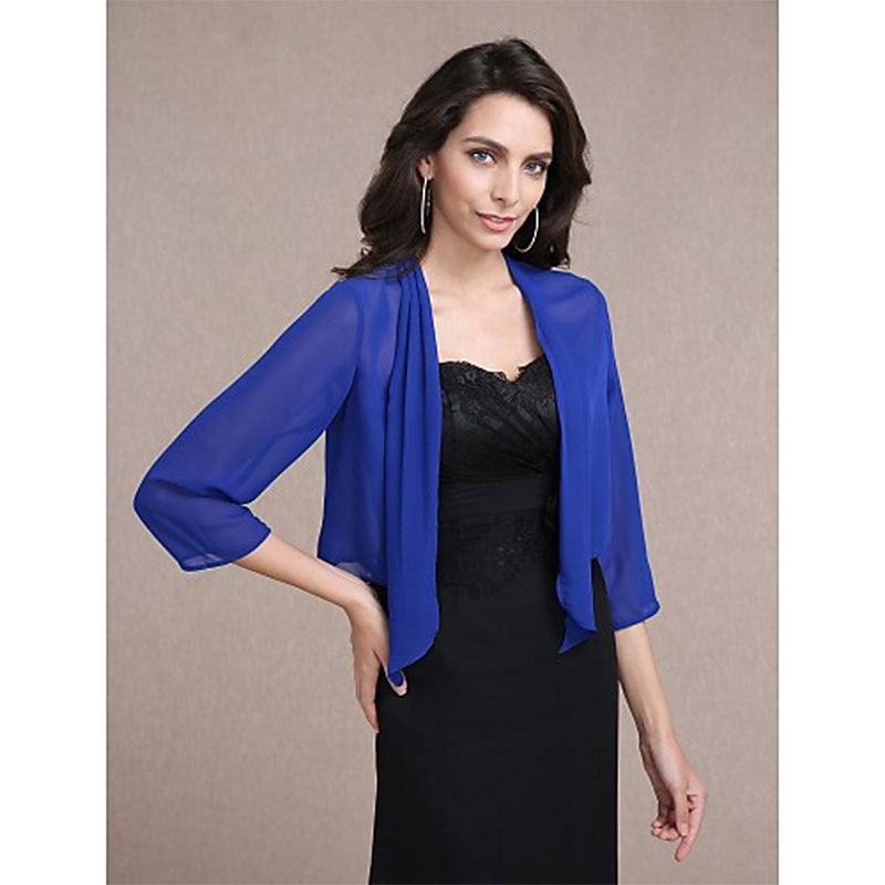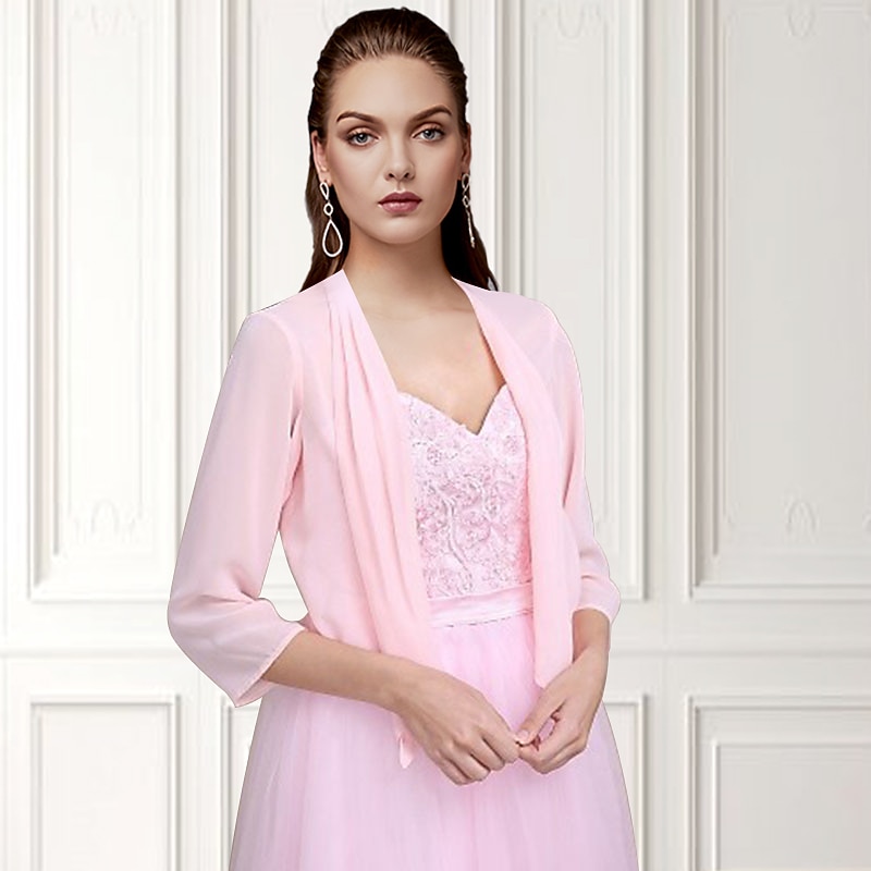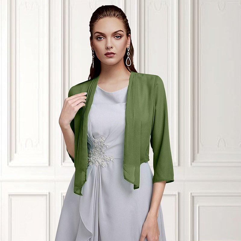More information about Shawls Bolero Ladies Elegant Casual Daily 3/4 Length Sleeve Chiffon Wedding Guest Wraps With Pure Color For Wedding Spring & Summer dress to impress