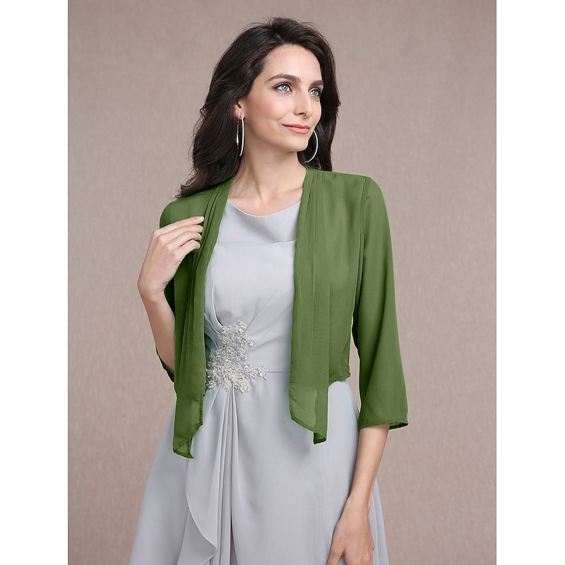 Shawls Bolero Ladies Elegant Casual Daily 3/4 Length Sleeve Chiffon Wedding Guest Wraps With Pure Color For Wedding Spring & Summer dress to impress 2