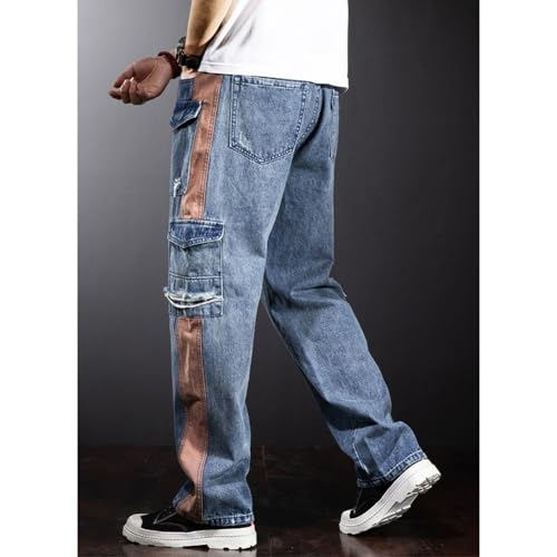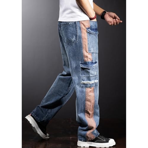 More information about Mens Ripped Cargo Jeans Straight Leg Patchwork Denim Pants Streetwear