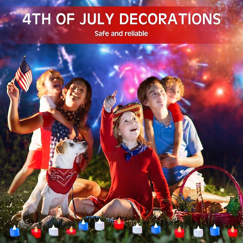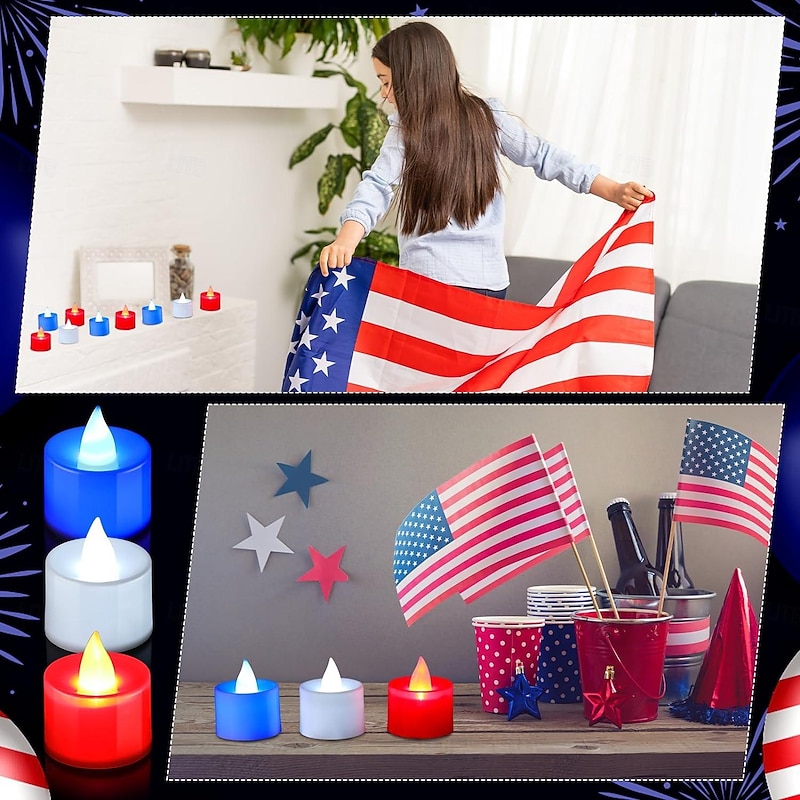 $17.99 - 24pcs Flameless Tea Light Independence Day Electronic Candle Light Red White Blue Light July 4th Flashing LED Votive Light Patriotic Fourth of July Independence Labor Memorial Day Home Decoration 2025. Shop for cheap Candle Lights online? Buy at lightinthebox.com on sale today!