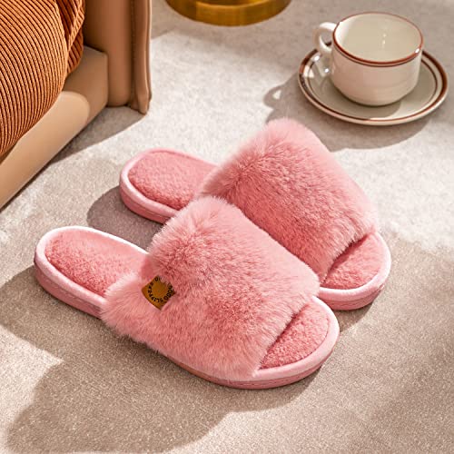 Onmygogo Indoor Slippers for Women Open Toe with Memory Foam, Soft Faux Fur Nonslip House Slippers 7