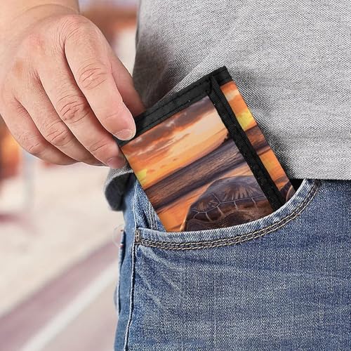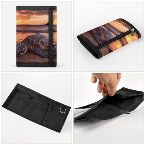 HOT ! Sea Turtle Sunset Trifold Wallet, Card Cases And Money Oganizer Thin Stylish Mini Coin Bag with Zipper Coin Pocket Credit for Men And Women