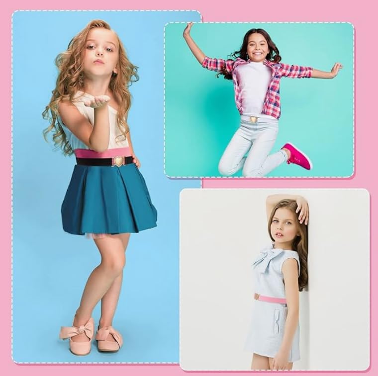 • 【Heart-Shaped Buckle Design】The girl's belt is designed with a unique heart-shaped buckle, which not only makes the elastic belt more adorable and beautiful, but also can be fastened quickly and easily. This elastic belt allows them to wear it easily and independently when using it.