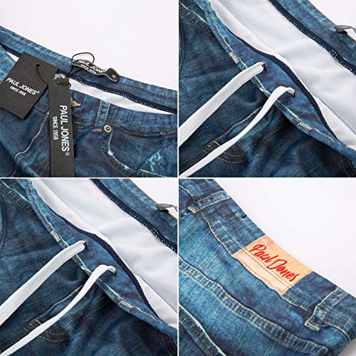 PJ PAUL JONES Men's Swim Brief Denim Print Swim Trunks Drawstring Waist Swimsuit Bikini Briefs 4