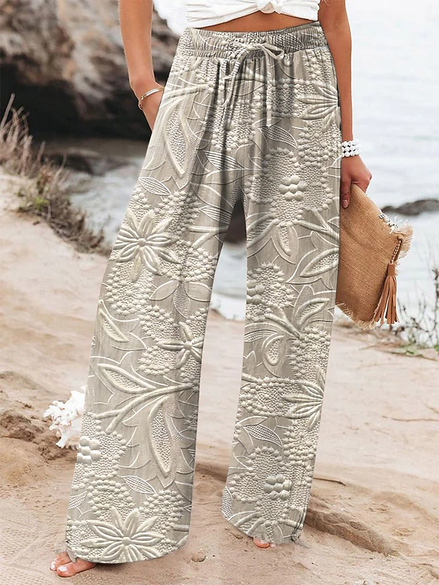More information about Women's Wide Leg Chinos Baggy Pants Vacation Vintage Fashion Full Length High Waist Floral Graphic Printing Thermal Warm Soft Breathable Micro-elastic Vacation Street Causal Black Pink Light Brown