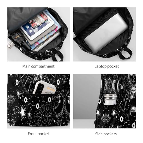 Sun And Moon Black And White Stylish Backpack With Adjustable Padded Shoulder Straps Daypacks For Girls College Travel 6