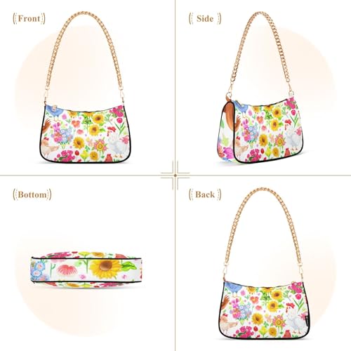 Zipper Hobo Purse Bags Colorful Chicken Spring Flowers Clutch Handbag Women Floral Shoulder Purses with Chain Strap 5