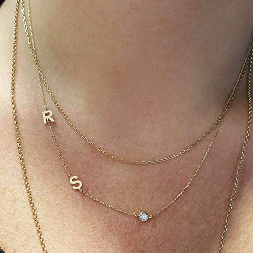 More information about 14k Sideways Initial Gold Necklace w Solitaire Diamond, Custom Multiple Letter Necklace, Personalized Solid Gold Initial Diamond Letter Necklace, Personalize Birthstone Bridesmaid Gift.