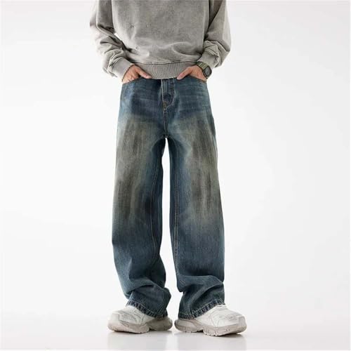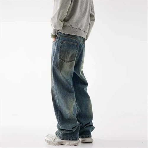HOT ! Men's Winter Cotton Baggy Jeans Vintage High Street Wide Legs Straight Denim Pants