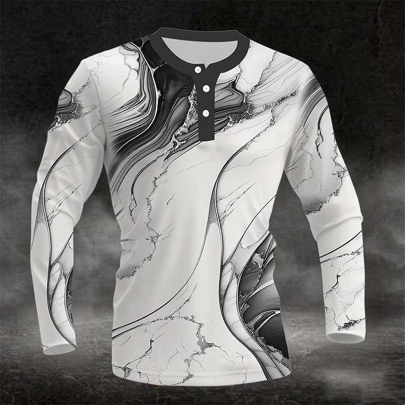 More information about Men's 3D Print Marble Henley Shirt Long Sleeve Fashion Cute Daily Casual Holiday Going out Spring & Fall All Seasons Black Blue Coffee Green Burgundy Henley Henley T-Shirt