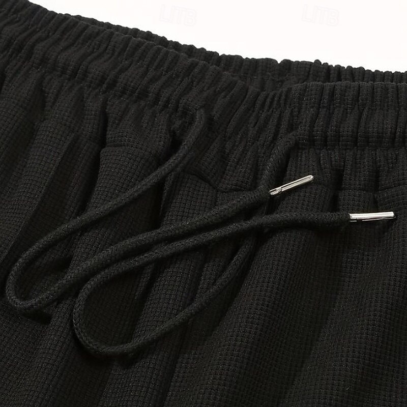 More information about Men's Sweatpants Trousers Waffle Pants Open Bottom Sweatpants Drawstring Elastic Waist Straight Leg Plain Moisture Wicking Breathable Full Length Sports Outdoor Casual Daily Fashion Streetwear Black