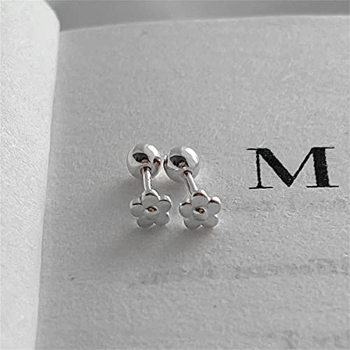 HOT ! 18G Minimalist Flower Sterling Silver Earrings for Women Girls Teens Hypoallergenic Stud Tiny Small 4mm Ball Back Cartilage Tragus Piercing Screw Post Cute Birthday Holiday Jewelry Gifts