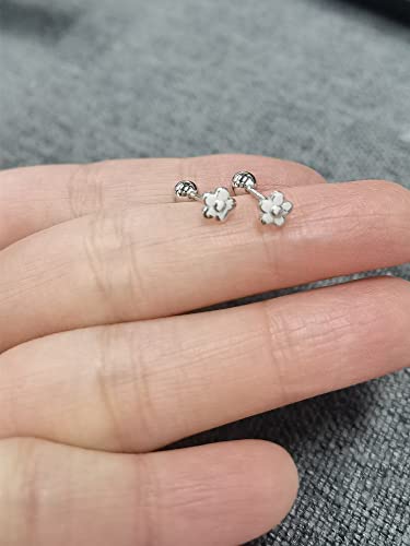 18G Minimalist Flower Sterling Silver Earrings for Women Girls Teens Hypoallergenic Stud Tiny Small 4mm Ball Back Cartilage Tragus Piercing Screw Post Cute Birthday Holiday Jewelry Gifts 5