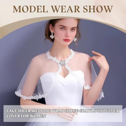 White Lace Shawl Wraps For Women Formal, Bolero Shrugs Shoulder Cover For Evening Dresses Formal, Wedding Bridal Cape Lace Cover Up Chiffon Scarf 3