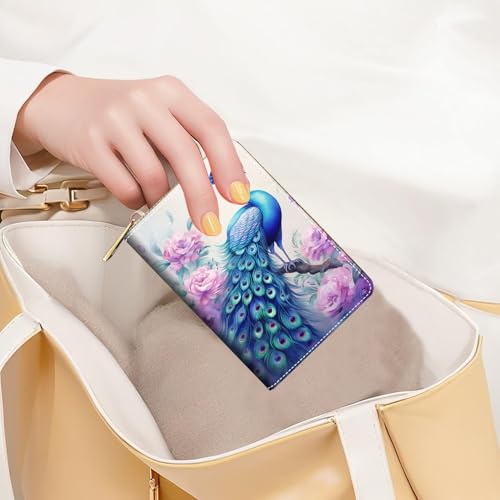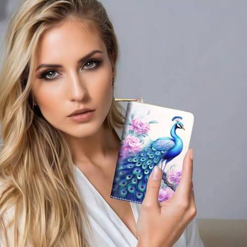 HOT ! Credit Card Holder Wallets for Women, RFID Blocking Small Leather Card Case Wallet with Zipper Accordion Wallets, Peacock