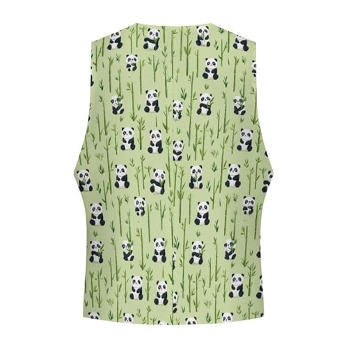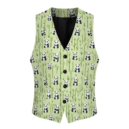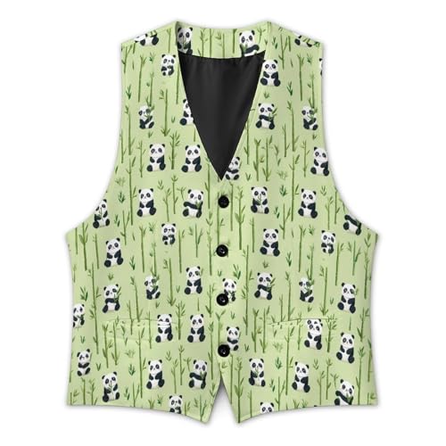 Cute Panda Suit Vest for Men Slim Fit Sleeveless Jacket V Neck Business Waistcoat Button Up Dressy Top 6