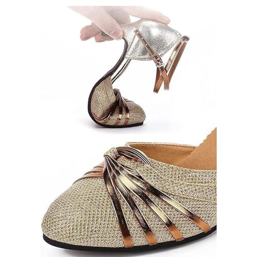 Women's Shoes with Closed Toe Dancing Shoes,Fashion Sequins Widen High Heels Latins Dance Shoes Ballroom Shoes Non Slip Rubber Sandals 2