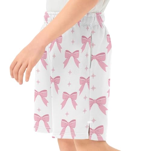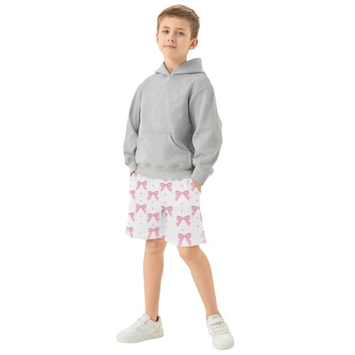Ribbon Bows Athletic Shorts with Zipper Pockets, Youth Boys Athletic Running Shorts for Summer 2