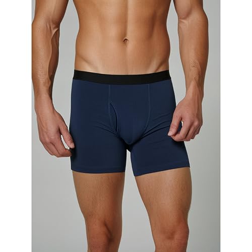 • 𝐏𝐑𝐄𝐌𝐈𝐔𝐌 𝐂𝐎𝐓𝐓𝐎𝐍 𝐁𝐋𝐄𝐍𝐃: Our stylish boxer made from soft, stretchy fabric, this pair combines the feel of cotton underwear men love with just enough flex for all-day ease and durability