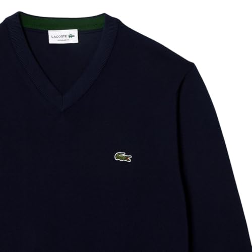 HOT ! Lacoste Mens Long Sleeve Regular Fit V-neck Organic Cotton Sweater