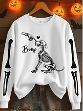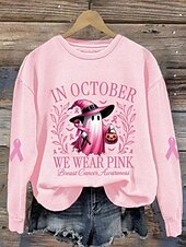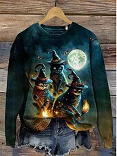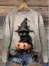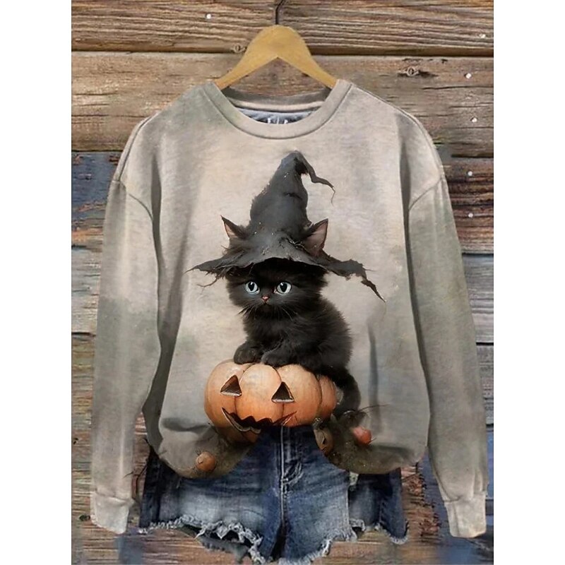 More information about Halloween Women's Pullover Sweatshirt Ghost Graphic Animal Cat Fashion Casual Long Sleeve Crew Neck Round Neck Regular Tops Street Dailywear Casual Print Black White Pink Orange Dark Blue Fall Winter