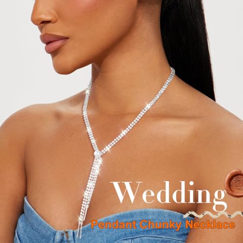 More information about Zoestar Rhinestone Necklace Jewelry Silver Long Necklaces Prom Dressy Neck Chain for Women