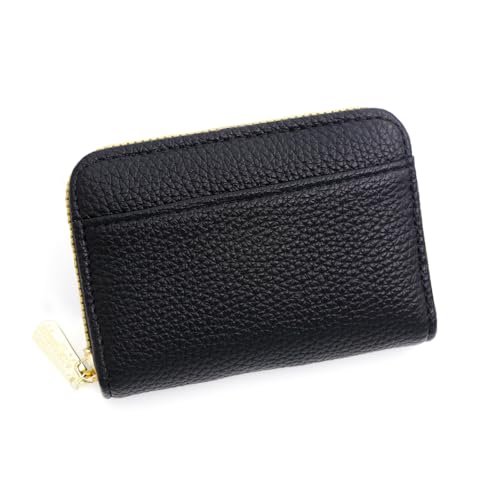 Small Genuine Leather Credit Card Holder for Women Zipper Wallet Classic Black (Black) 1