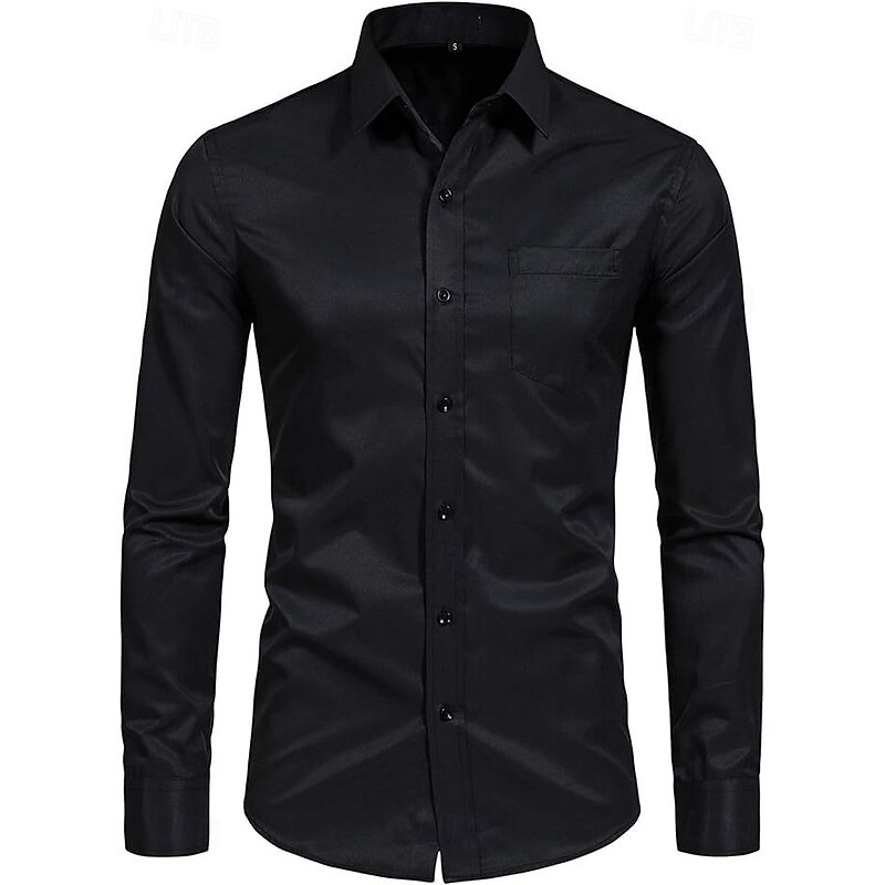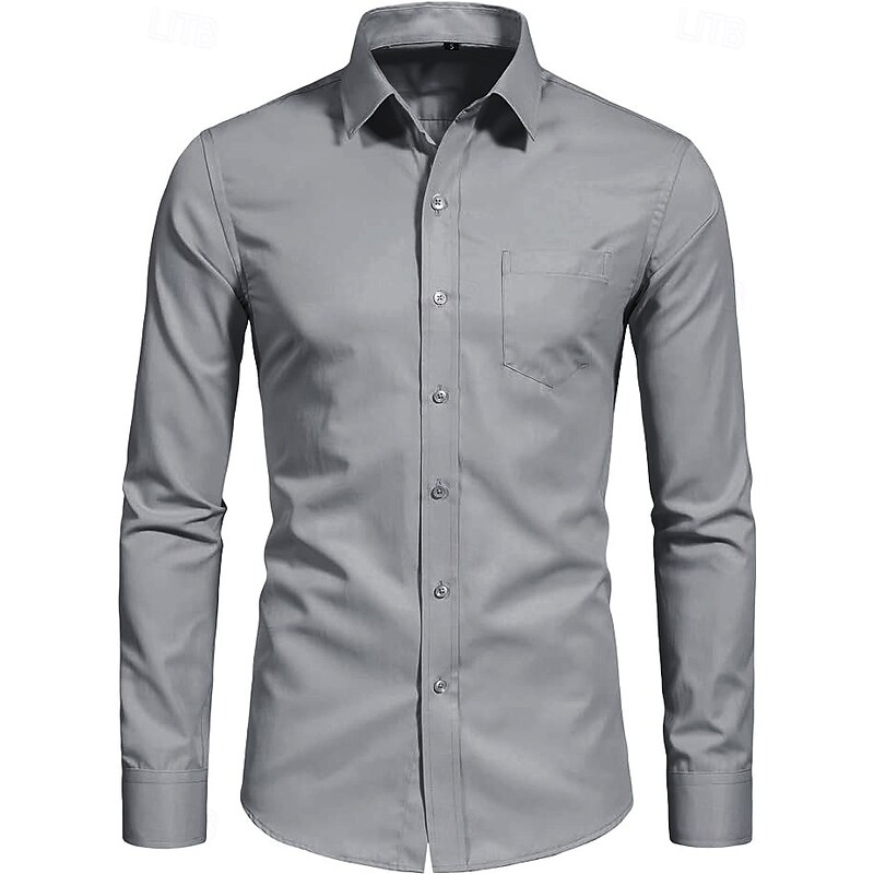 More information about Men's Classic Casual Shirt Homecoming Standard Fit Long Sleeve Lapel Solid Color Polyester Black Sky Blue Grey 2025