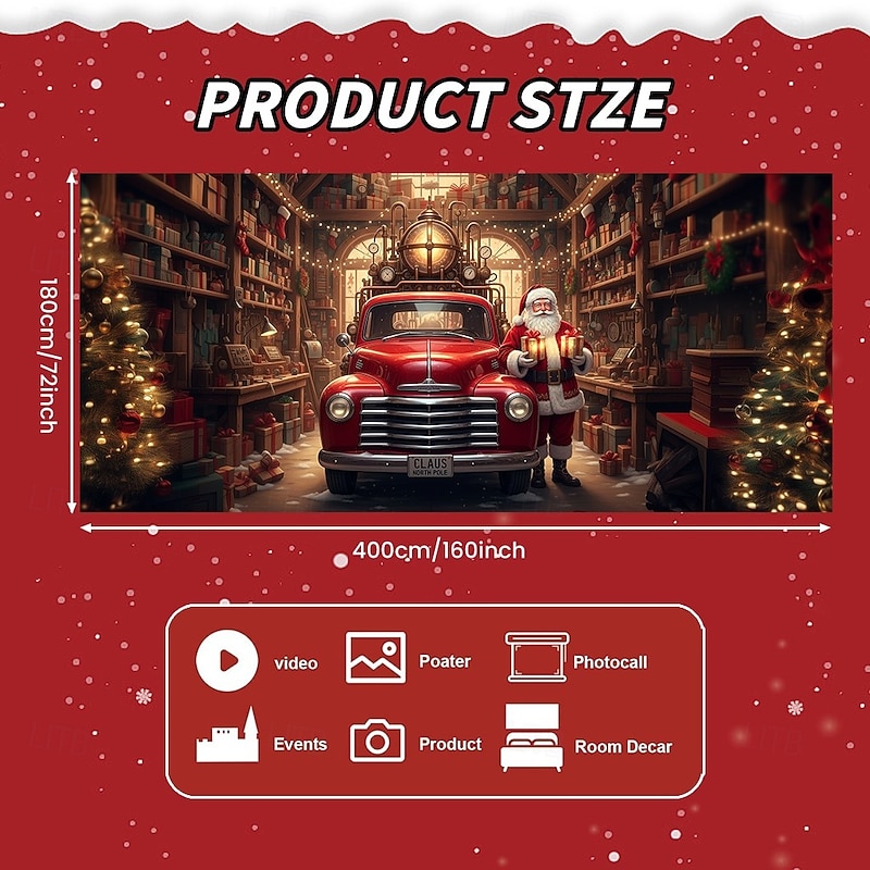 More information about Christmas Garage Door Cover Santa Claus House Large Hanging Backdrop Outdoor Holiday Party Decoration 3D Festive Wall Banner Yard Home Christmas Scene Background
