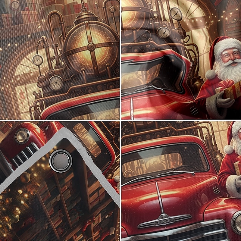 Christmas Garage Door Cover Santa Claus House Large Hanging Backdrop Outdoor Holiday Party Decoration 3D Festive Wall Banner Yard Home Christmas Scene Background 4