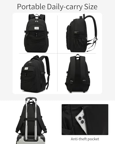 HOT ! Black Backpack for Teens, Girls School Bookbag Aesthetic 17.3in Laptop Backpack for Commuter Women Students Middle High School, Black