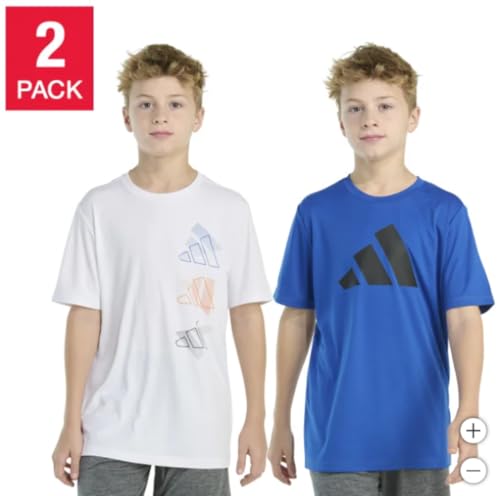 Adidas Boy's 2 Pack Performance Short Sleeve Tees (US, Alpha, Large, Regular, White and Blue) 2